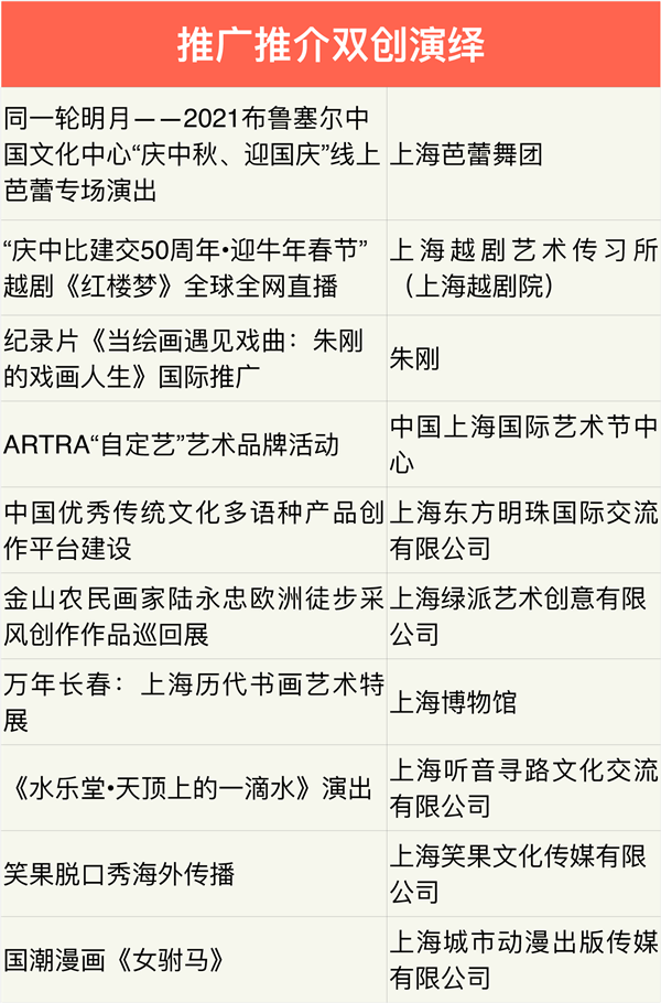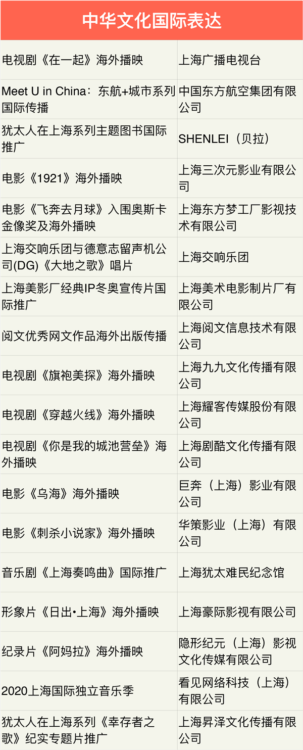 2021年上海市“中华文化走出去”专项扶持资金入选项目公布